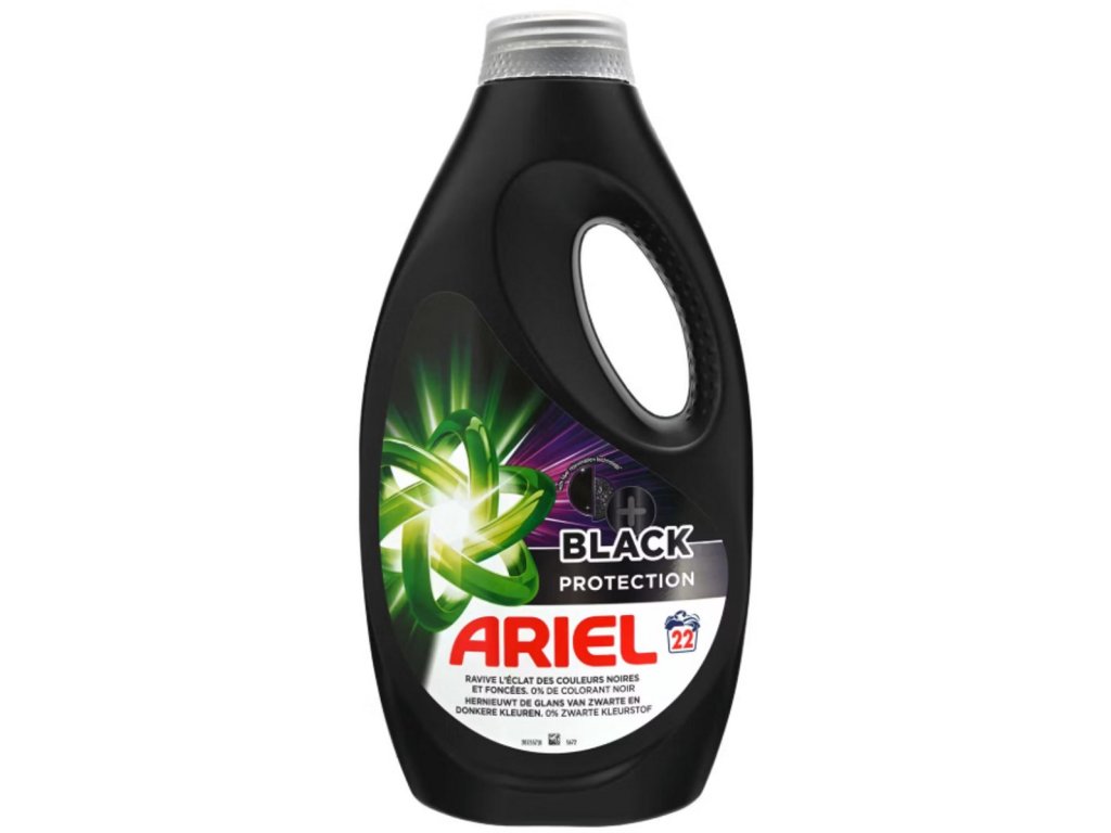 ARIEL Black Protection 22W prací gel 990ml navržen pro černé tkaniny, pomáhá zachovat intenzivní černou barvu oblečení, odstraňuje odolné skvrny a nečistoty a zajišťuje tak dokonale čisté tkaniny, určený k péči o vlákna oblečení a zachování jejich tvaru, zanechává dlouhotrvající vůni svěžesti, pohodlný a praktický.
