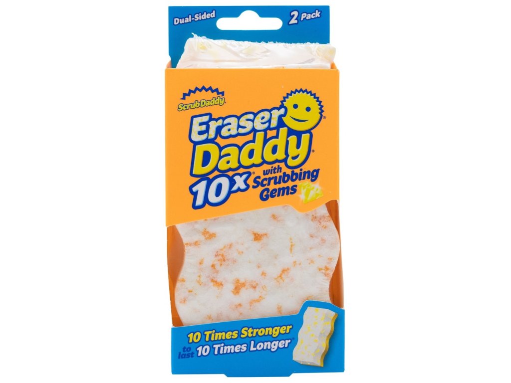 Eraser Daddy jsou extra silné čisticí houbičky, které se aktivují vodou a poradí si s nečistotami, skvrnami i šmouhami, na které běžné houbičky nestačí. Kombinují exkluzivní materiál Power Erase, který je 10x odolnější než tradiční melaminové houbičky s vrstvou FlexTexture®, která pomáhá uvolnit nečistoty. To znamená, že si poradí i s těmi nejodolnějšími skvrnami, jako jsou skvrny od fixů a tužek na stěnách a nábytku, usazeniny vodního kamene v koupelně, zaschlá mastnota na kuchyňských skříňkách, šmouhy na botách a mnoho dalších. Balení obsahuje 2 ks houbiček.
