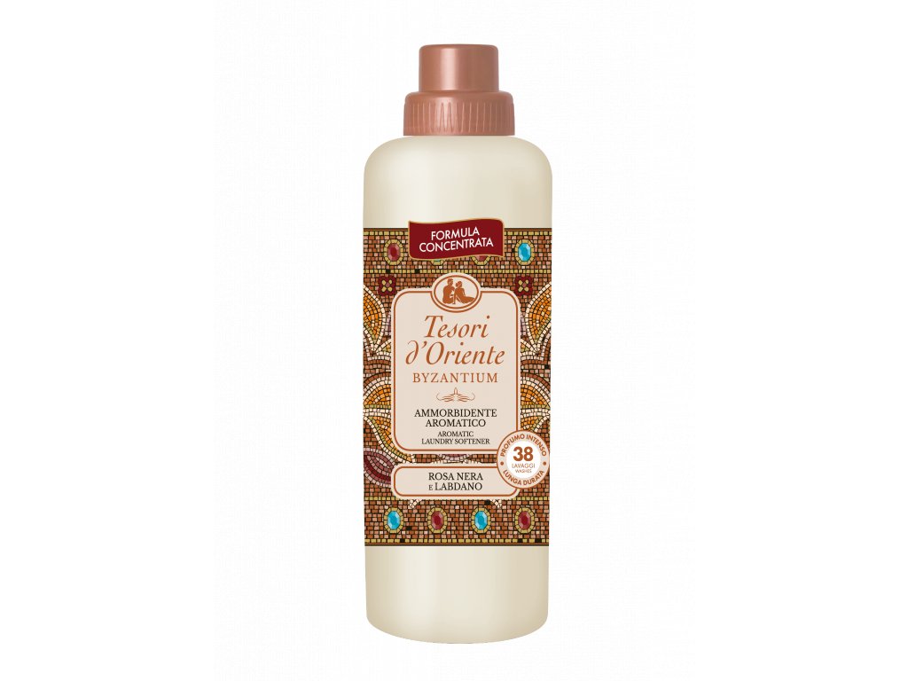 Omamné a intenzivní vůně Tesori d´Oriente zahalí vaše prádlo a oděvy do smyslného objetí a zanechá je krásně parfémované a měkké. Esenciální olej z nejvzácnější černé růže je hlazen teplými tóny labdanového oleje a dodává prádlu nezaměnitelnou a intenzivní vůni. Aviváž Tesori d´Oriente Byzantium je obohacena o vzácné mikrokapsle parfému. Krémové složení bez barviv, se složkami usnadňující žehlení. Neobsahuje: syntetická barviva. Testováno na: nikl, chrom kobalt (obsah chrómu, niklu a kobaltu menší než 0,00001%). 30 pracích dávek.