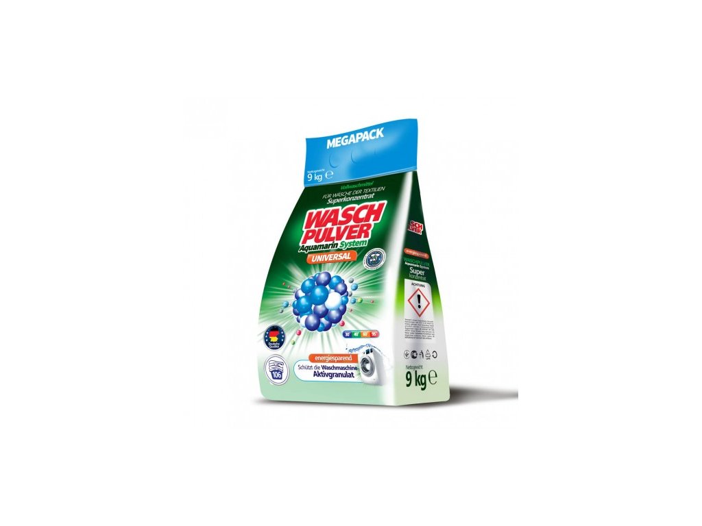WaschPulver prášek 9kg Univerzální fólie Aquamarin je kvalitní a účinný německý prací prášek s kapacitou až 9kg. Velmi výkonný, takže vystačí až na 106 praní! Vyznačuje se intenzivní vůní a velmi dobře se rozpouští ve vodě, odstraňuje i ty nejhorší skvrny a navrací oblečení barvu.